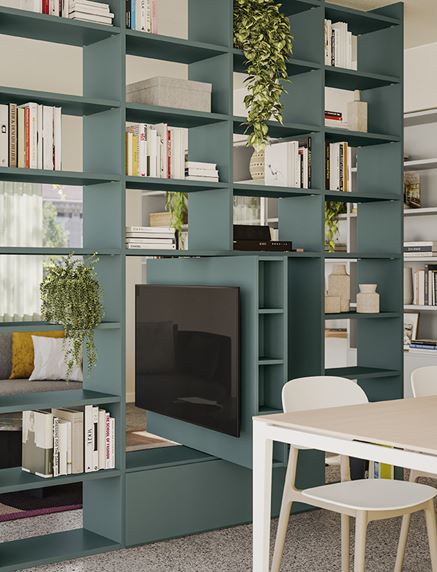 Infinity dalla collezione Golf della Colombini, propone il sistema librerie in altezza a misura fino a tre metri, per creare composizioni interparete che abbiano la funzione di contenere ma anche di separare due zone diverse della stessa zona giorno. Realizzabile con elementi sospesi che a terra, la collezione Infinity propone appunto infinite combinazioni per soddisfare qualsiasi esigenza, adattandosi facilmente a vincoli architettonici della casa.