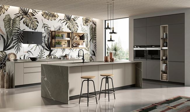 La cucina Pura è caratterizzata dall'anta con maniglia integrata. Una linea dalle forme versatili è l'ideale per creare una cucina personalizzata sotto ogni aspetto.