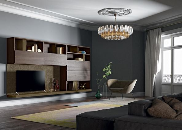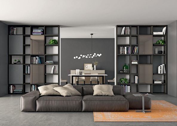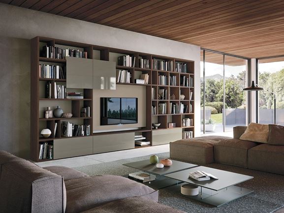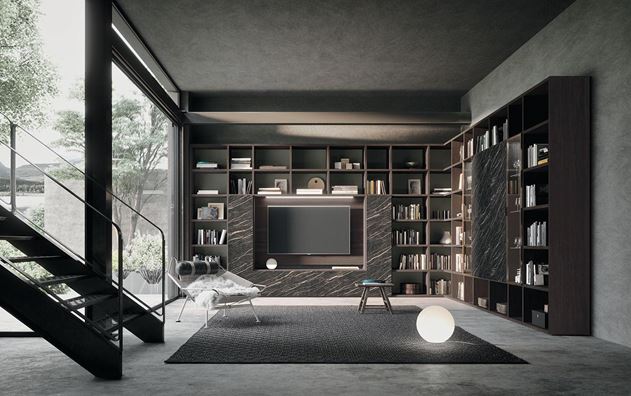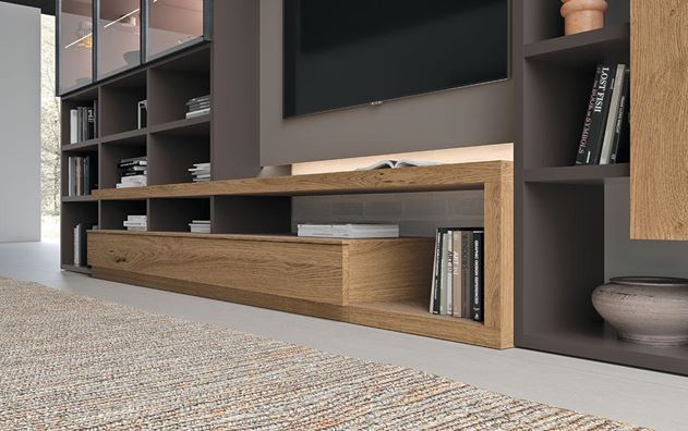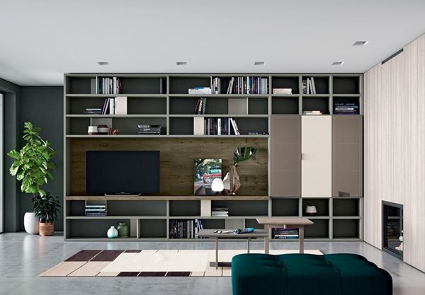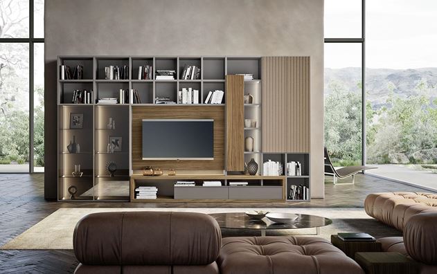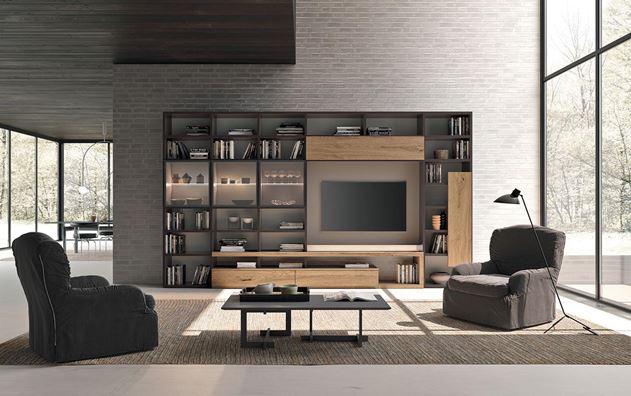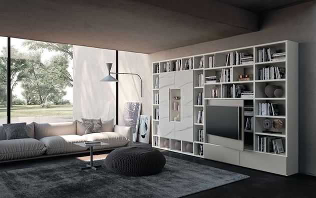 Il soggiorno Horizon è perfetto per la realizzazione di librerie a spalla portante e mobili con vano Tv.