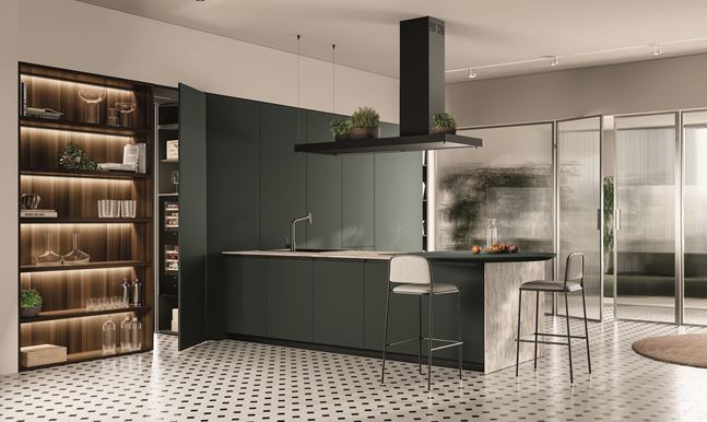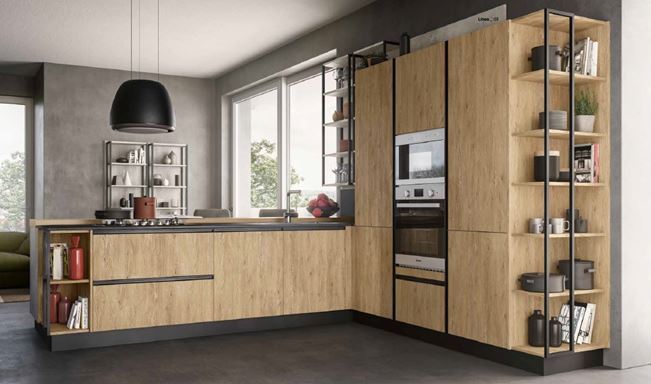 La Cucina Linea è una cucina con maniglia a gola; completamente componibile e disponibile sia con anta laccata lucida che opaca, nelle finiture legno, pannello Uni-en 9001 a basso contenuto di formaldeide certificato.