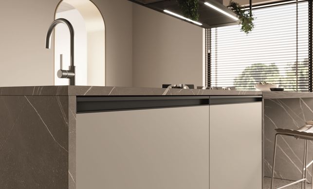 - Maniglia a gola disponibile nelle finiture alluminio, bianco, nero, champagne, antracite, rosa;